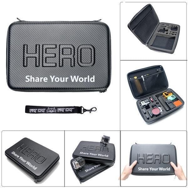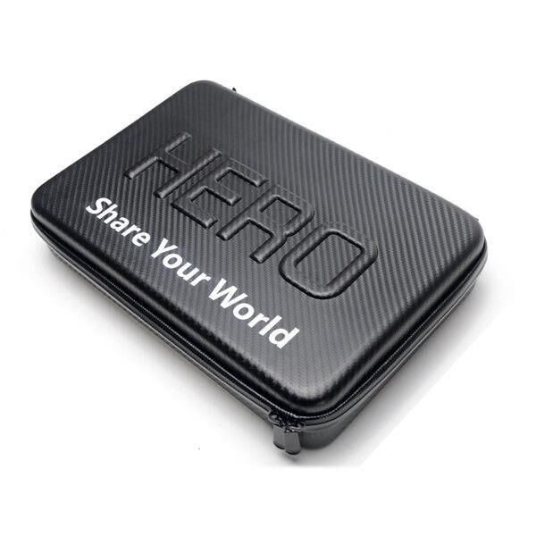 Aksiyon kameranızı ve aksesualarını taşımak ve güvenle korumak için ideal çantadır. Su geçirmez özelliğe sahiptir. Çantanın üzerinde HERO yazmaktadır.