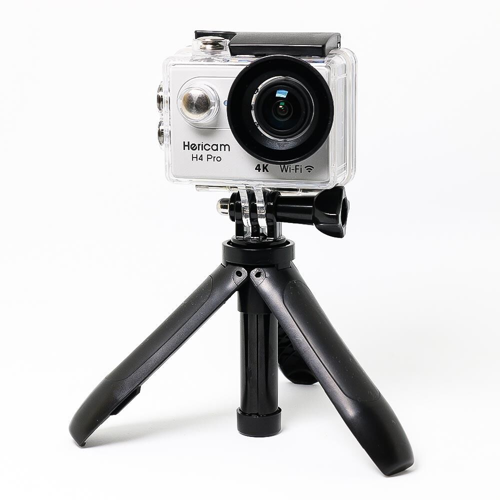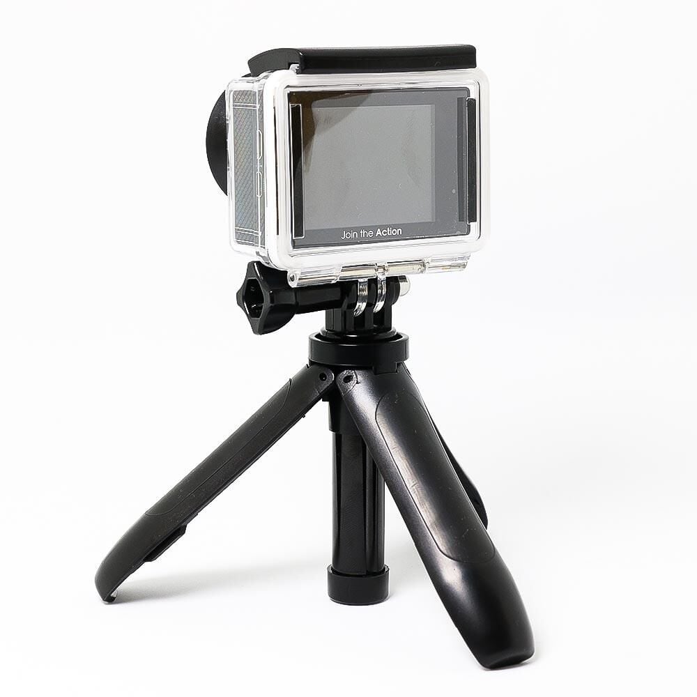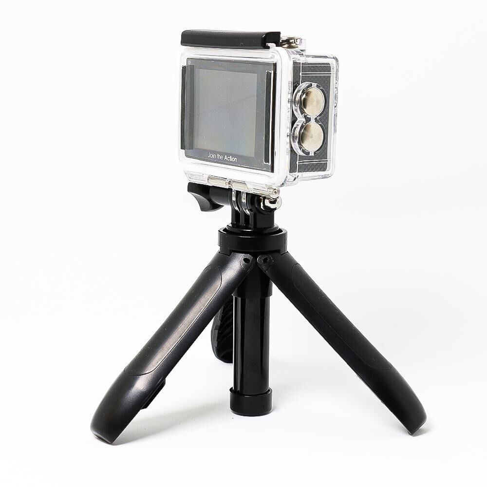 Aksiyon kameralar için mini tripod ürünü sert plastik malzemeden üretilmiştir ve dayanıklı bir yapıya sahiptir. Standart aksiyon kamera bağlantı tokasına ve vidasına sahip tripod universal bir aksiyon kamera bağlantısı şeklinde tasarlanmıştır. Üç ayak olarak tasarlanmış olsa da selfie olarak uzamakta ve el ile kavraması kolay hale gelmektedir.