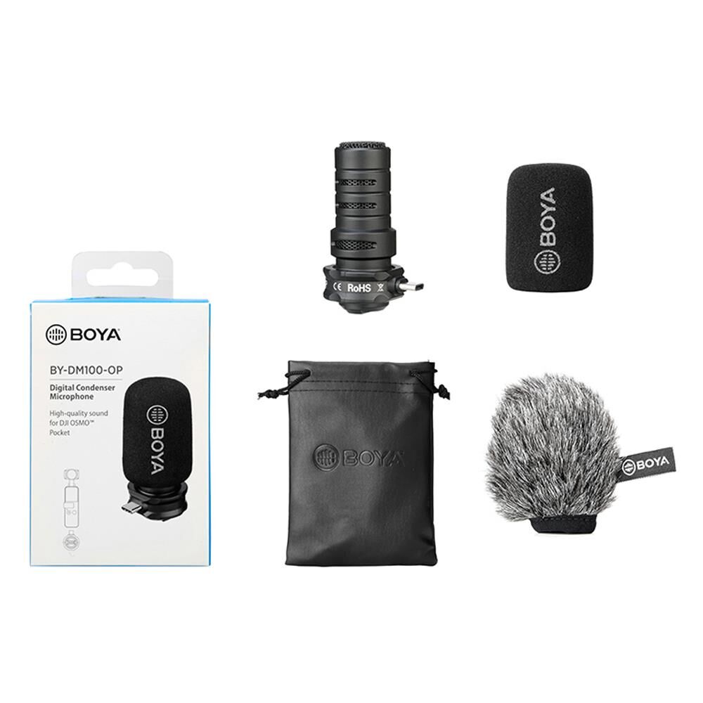 Boya BY-DM100-OP Dji Osmo Pocket için özel olarak tasarlanmış dijital bir shotgun kondenser mikrofonudur.