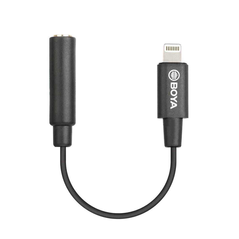Boya BY-K3 Apple kulaklık mikrofon dönüştürücü kablo, 3,5mm jak kullanan kulaklık veya telefon uyumlu (TRRS) mikrofonları lightning girişli aygıtlarınıza bağlamanızı sağlar.