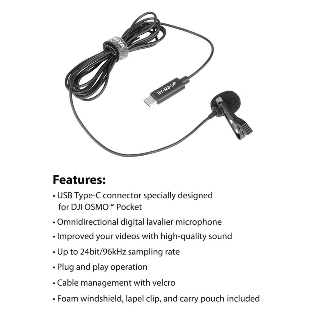 Boya BY-M3-OP Dji Osmo Pocket için özel olarak tasarlanmış dijital çok yönlü yaka mikrofonudur. Cihazınızla yaptığınız çekimlerde özellikle konuşma seslerini daha net kaydetmek için bu mikrofonu kullanabilirsiniz. Konuşma seslerini ön plana alırken çevre seslerini azalmanızı sağlar.