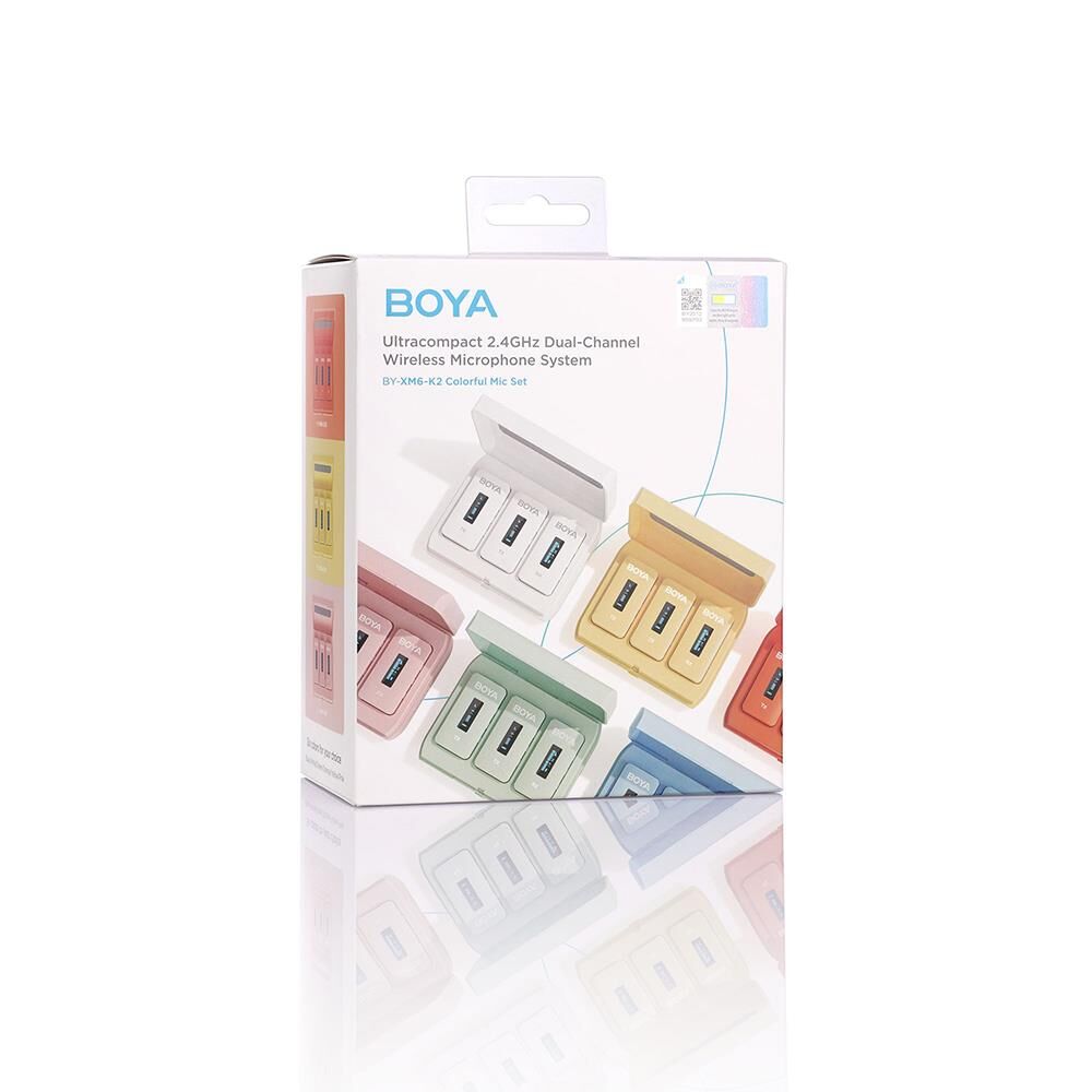2.4GHz uyarlanabilir frekans atlamalı kablosuz mikrofon sistemi olan BOYA BY-XM6-K2; iki verici, bir alıcı ve bir şarj kutusundan oluşur. Mükemmel bir ses yakalama, aynı zamanda iki kişilik vlog, YouTbe videosu, canlı yayın, röportaj, kayıt vb. için çözüm sunar.