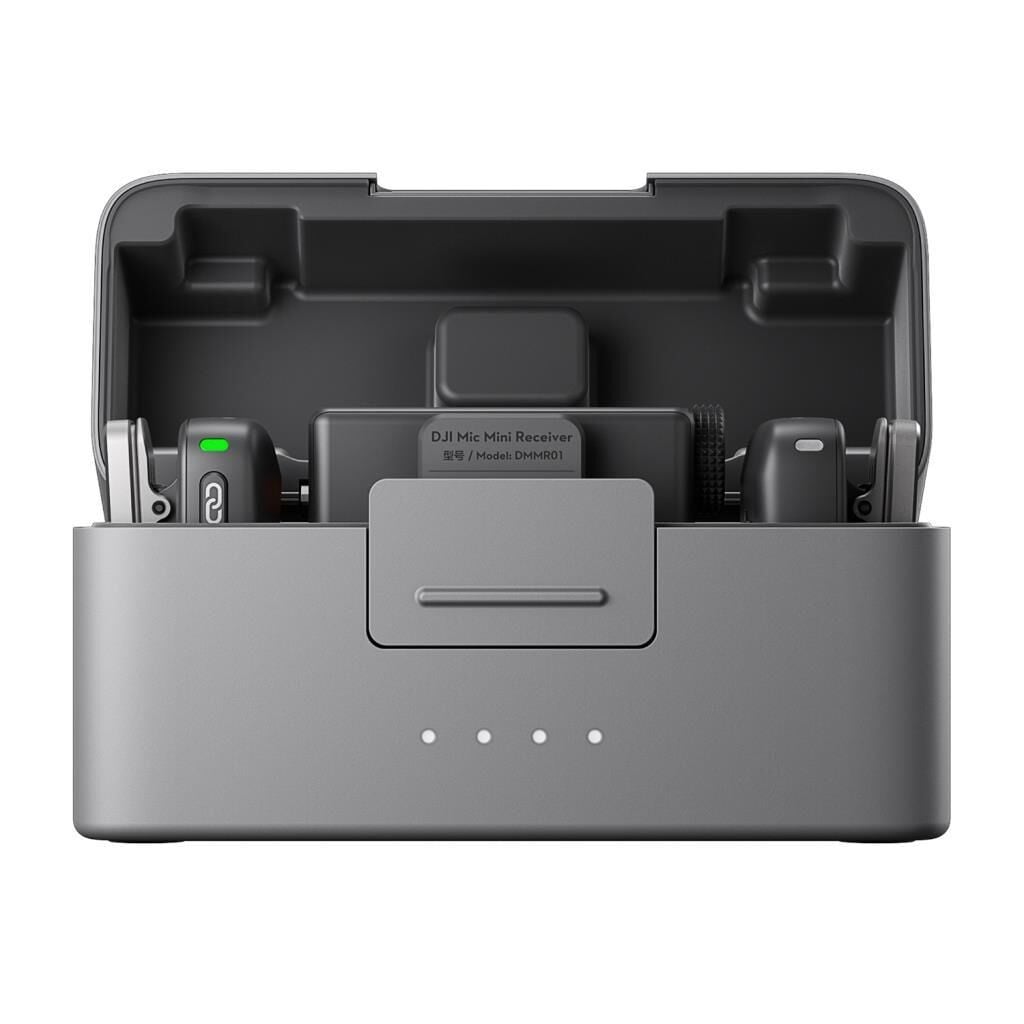 Kompakt DJI Mic Mini, kolay saklama için yenilikçi bir tasarıma sahiptir. Şarj kutusu iki vericiyi, bir alıcıyı, cep telefonu adaptörlerini ve rüzgar kesici'yi düzgün bir şekilde saklayabilir. Çantada saklandığında vericilerin üzerindeki rüzgar kesicilerin çıkarılmasına gerek yoktur. Tüm setin kullanımı ve saklanması kolaydır.