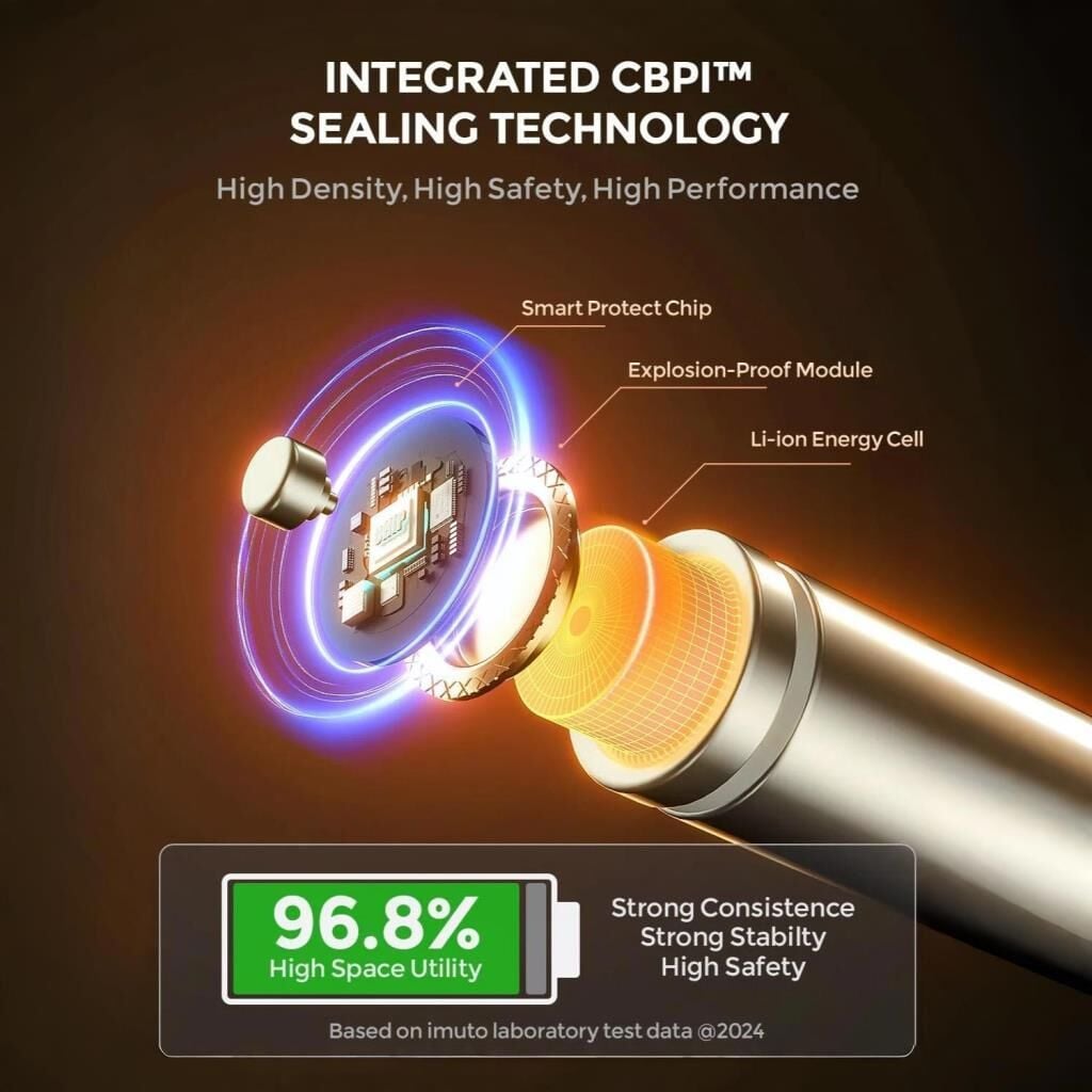 - CBPI sızdırmazlık teknolojisi: Imuto’nun geliştirdiği CBPI teknolojisi, pillerin sızdırmazlığını artırır ve pil içi hacim kullanımını %15’e kadar iyileştirir. Ayrıca üretimde kurşun, cıva veya kadmiyum gibi zararlı maddeler kullanılmaz.