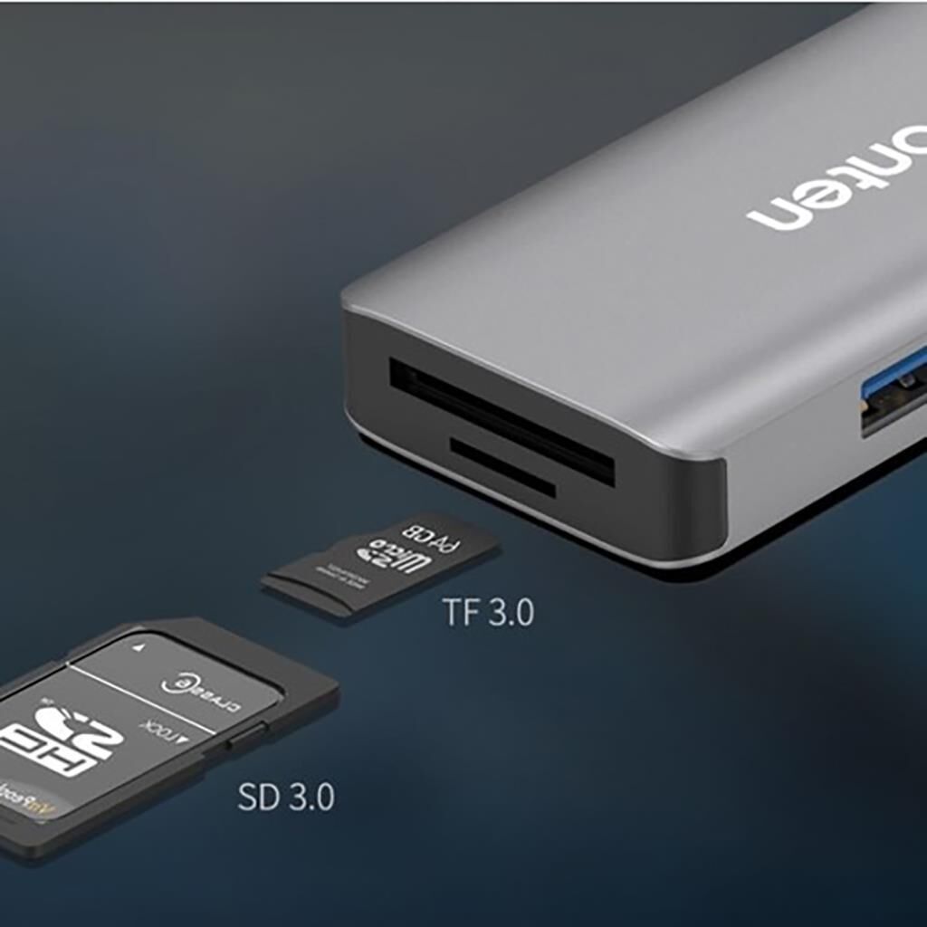 - Hub aynı zamanda CF, SD, TF (Micro SD) kartlarının okunmasına ve yazılmasına izin veren bir hafıza kartı okuyucusudur. 512 GB'a kadar kapasiteleri destekler.