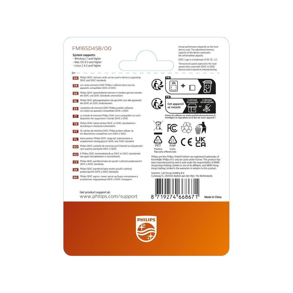 Philips 16GB Ultra Hızlı UHS-I SDHC Hafıza Kartı (FM16SD45B/00)