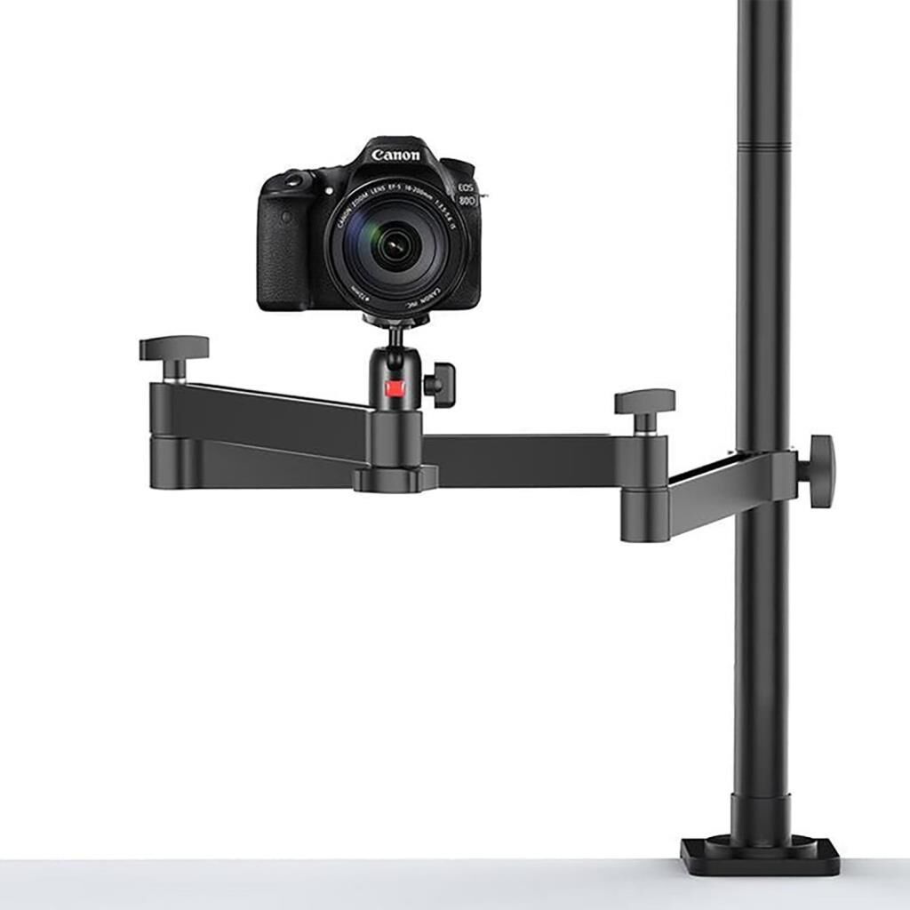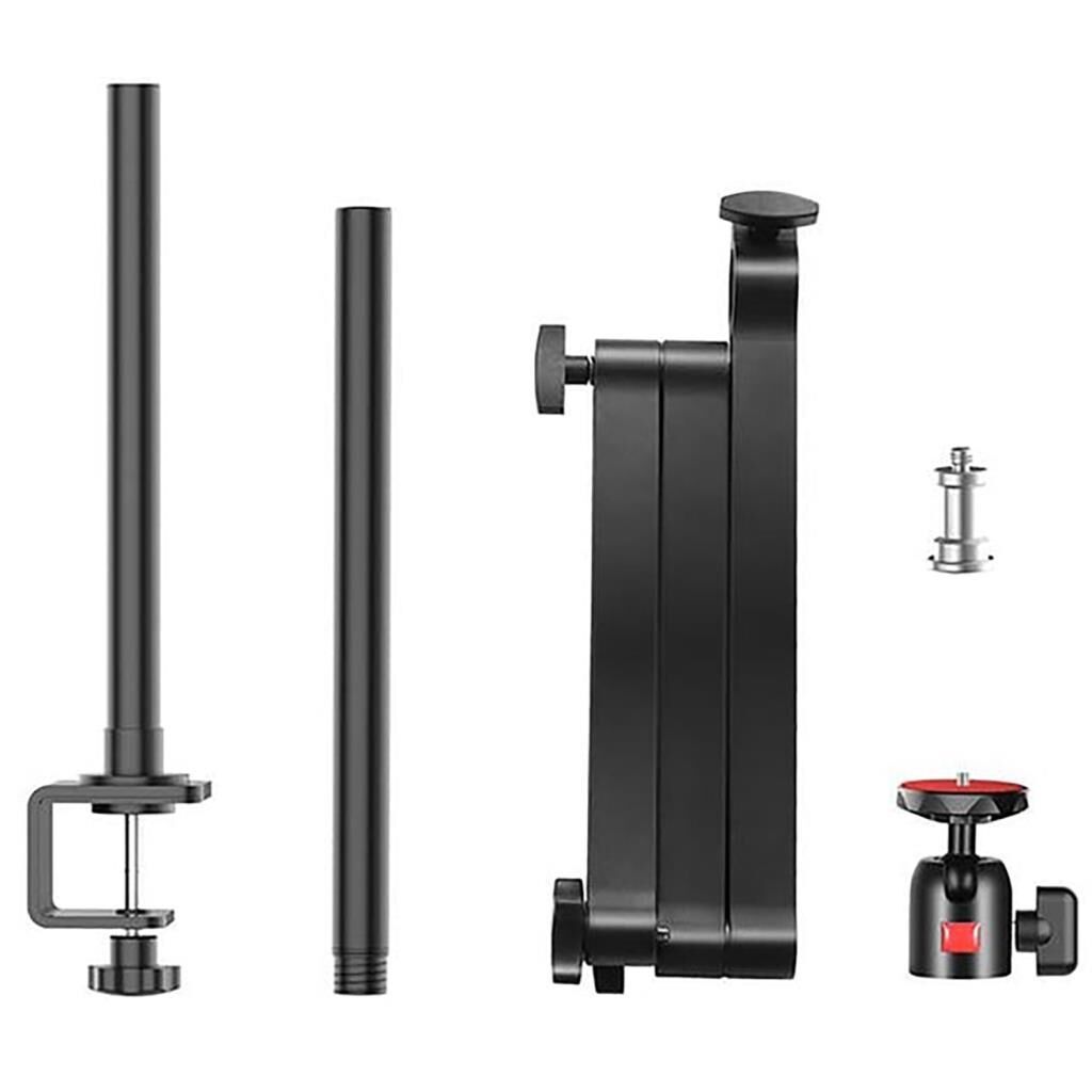 Ulanzi 2335 Universal Masaüstü Standı, 1/4" erkek vida bağlantısı ile akıllı telefon, video kamera, fotoğraf makinesi, ışık v.b. ürünlerinizi taşıyabilecek kapasiteye sahip bir mikrofon standıdır. Sıkıştırılabilir kelepçe bağlantısı sayesinde maksimum 50mm genişliğinde olan, yüzey farketmeksizin her türlü masada kullanılabilir bir yapıya sahiptir. Herhangi bir ürün bağlantısını 1/4" boyutunda vida ile yapabilirken, 360° ball head'le de her açıda ayarlayabilirsiniz.