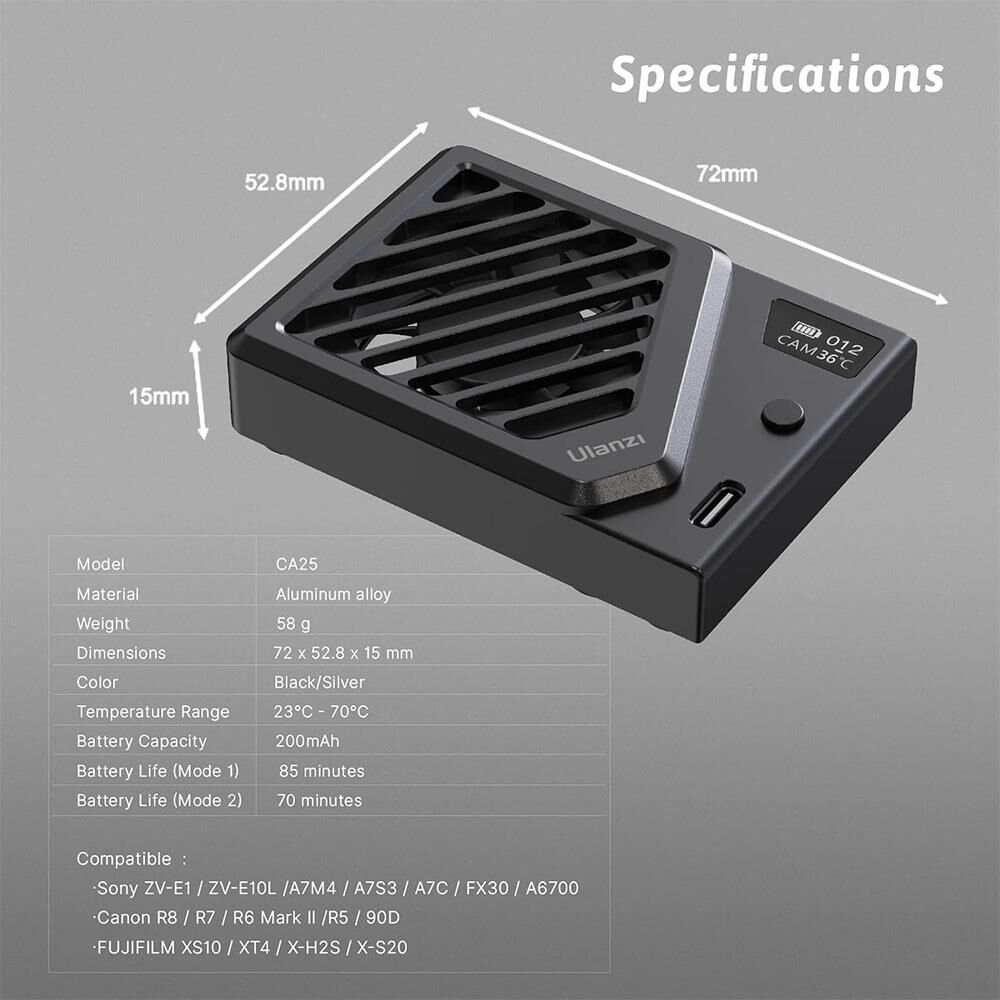Ulanzi CA25-S Sony/Fujifilm/Canon/Nikon Kameralar İçin Soğutma Fanı