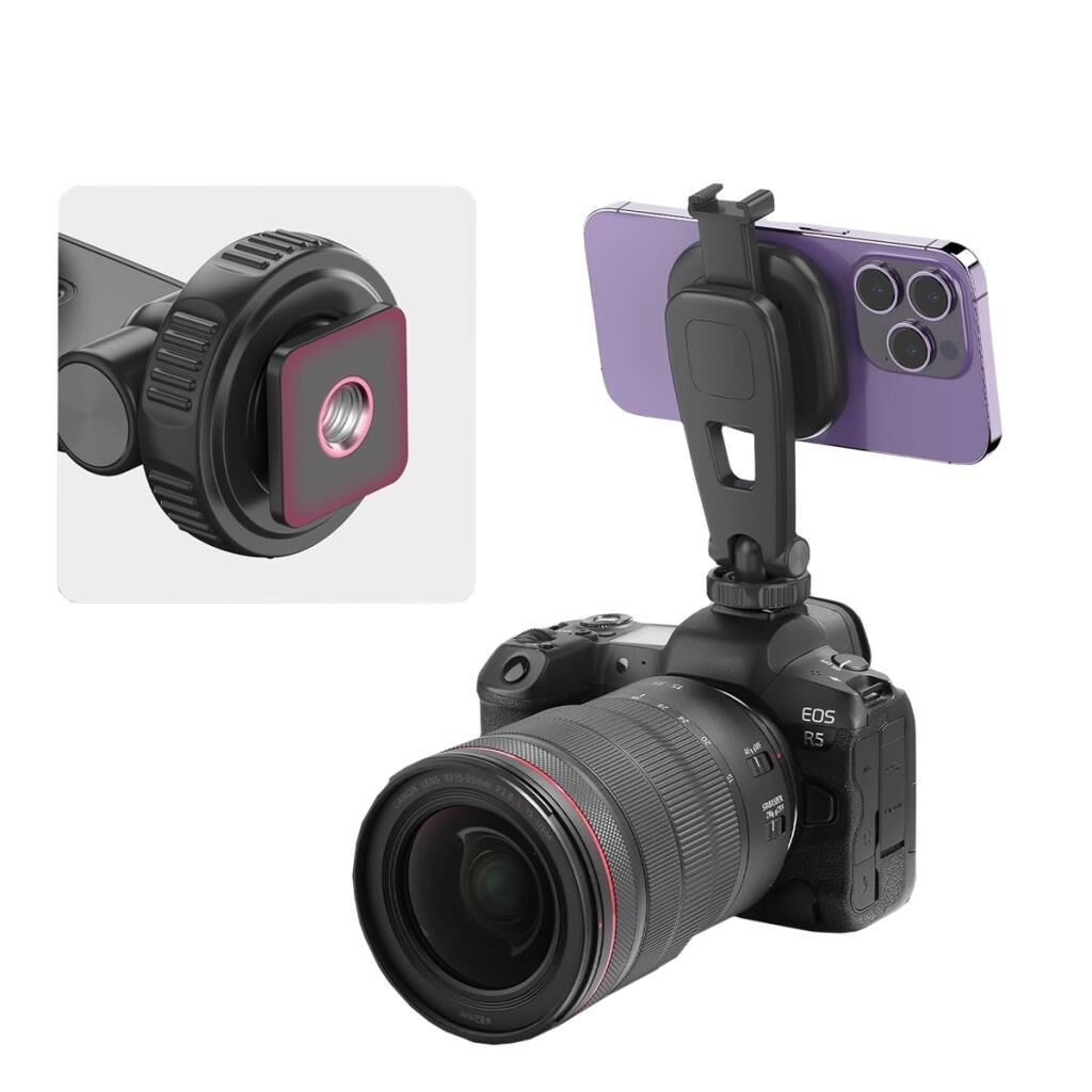 Benzersiz Tasarım: Telefon tripod yuvası, toplam 360° için 90° aralıklarla döndürülebilen ve ayrıca sökülebilen bir soğuk ayakkabı yuvası ile donatılmıştır. Cep telefonuyla çekim yapmayı daha profesyonel hale getirmek için mikrofonu, dolgu ışığını ve diğer ekipmanları genişletebilirsiniz.