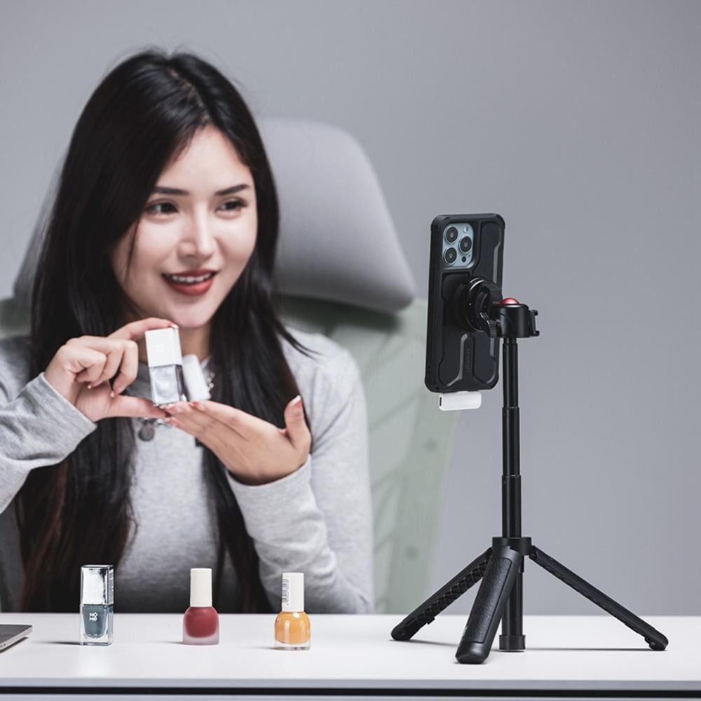 Dönüştürüldükten sonra, O-LOCK hızlı serbest bırakma bağlantısına sahip herhangi bir telefon veya telefon kılıfını adaptöre takabilir ve 360° döndürme özelliği sayesinde mükemmel açıyı kolayca ayarlayabilirsiniz. Bu, canlı yayın, vlog çekimi ve çeşitli fotoğraf/video içerikleri üretirken esnek bir kullanım sunar.
