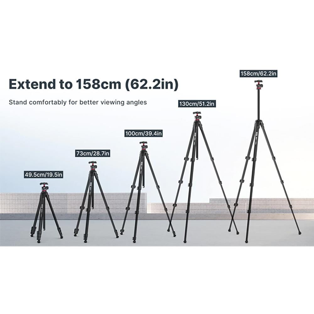 Ulanzi Ombra YING Travel Tripodun ağırlığı sadece 1,1 kg'dir. Bu sayede, seyahatlerinizde kolayca taşıyabilirsiniz. Tripod, 360 derece dönebilen kafaya sahiptir ve ayarlanabilir bacakları ile zorlu arazilerde bile stabil bir kullanım sağlar.