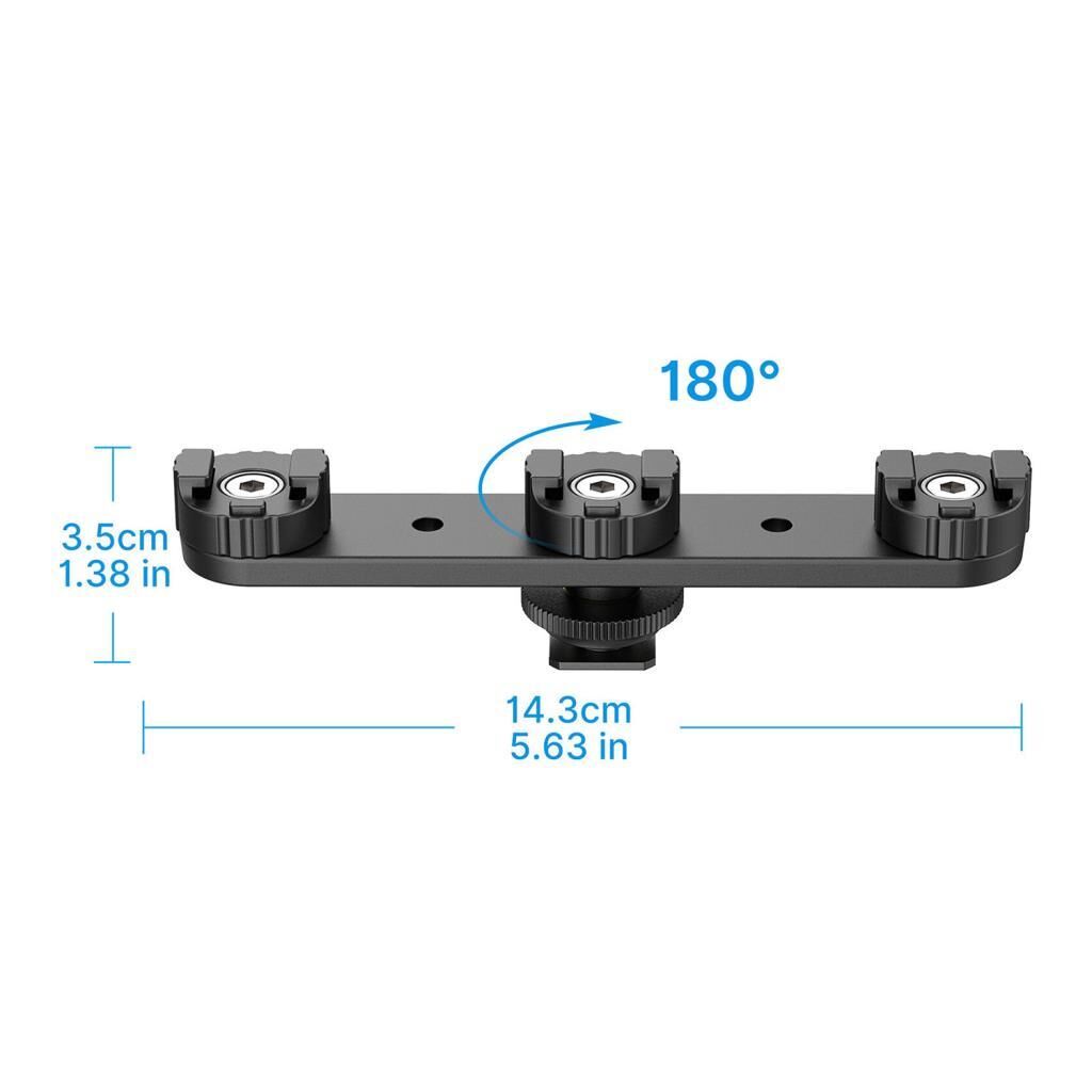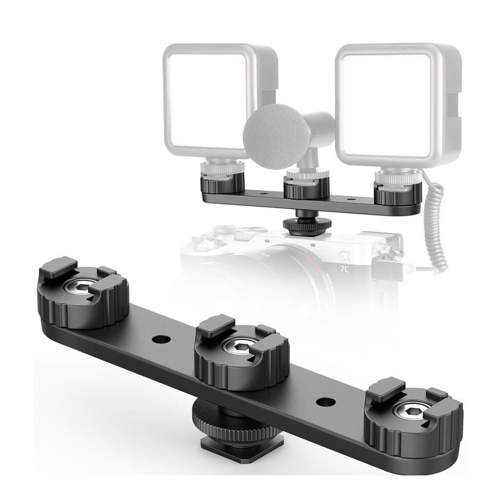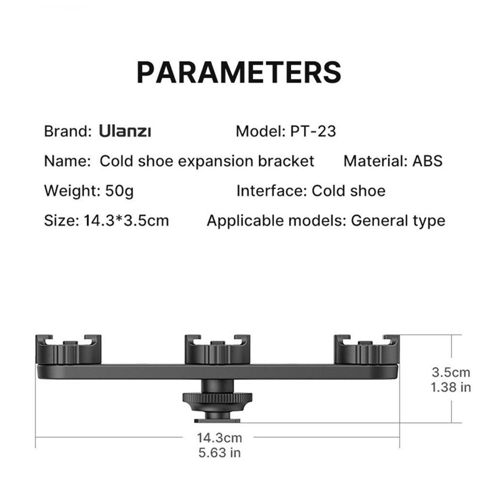 Ulanzi PT-23 sayesinde kamera veya fotoğraf makinesi çekimlerinizde cihazınıza 3 adet aksesuar takabilirsiniz. Video çekimlerinde genellikle ihtiyaç duyulan mikrofon, flash veya led ışık gibi aksesuarları bir arada kullanabilirsiniz. Ürün evrensel kızak girişi (cold-shoe) kullanmaktadır aynı zamanda alt kısmında standart tripod vida girişide bulunmaktadır bu sayede ürünü herhangibir tripoda da bağlayabilirsiniz.