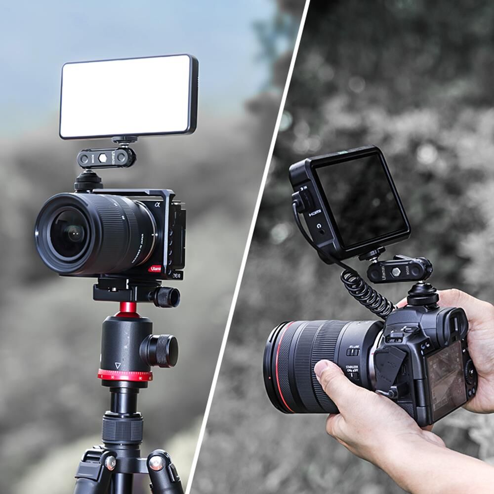 Ulanzi'nin Çift Bilyalı Kafa Sihirli Kolu ile kamera ekipmanınıza monitör, dolgu ışığı veya mikrofon takabilir ve ayarlayabilirsiniz. Bu sihirli kol 3.9 inç (100 mm) uzunluğa sahiptir, 1 ila 1.5 kg taşıma kapasitesi sunar ve 180° eğim, 360° dönüş yapabilen iki bilyalı başlığa sahiptir. Üst bilyalı başlık 1/4"-20 vida montajı, alt kısım ise cold shoe yuvası ve 1/4"-20 dişli bağlantı noktası içerir. Bu sayede uyumlu aksesuarları bağlayabilir ve kolu doğrudan kameranıza veya bir kamera kafesine monte edebilirsiniz.