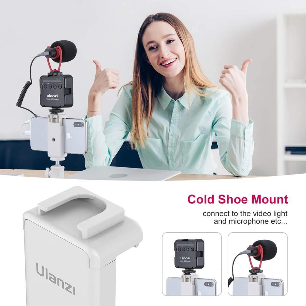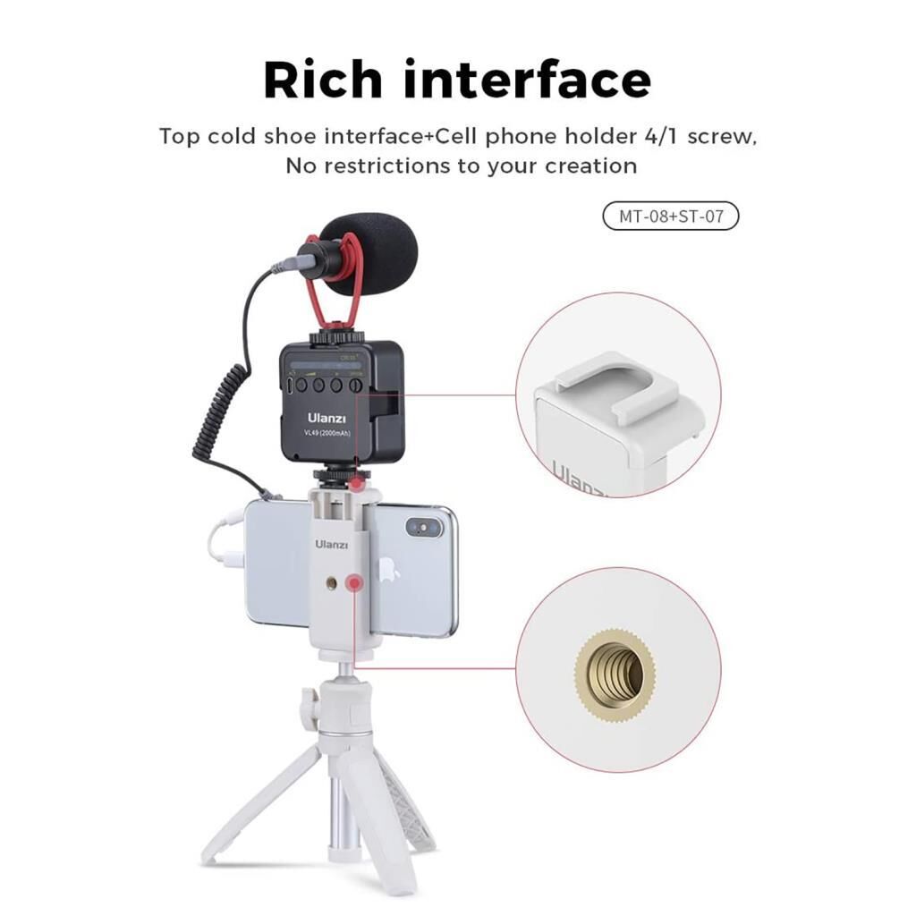 Ulanzi ST-07 Vlog Phone Clip ürünü üst kısmında yer alan cold shoe girişiyle, telefonunuza mikrofon, mini ışık ve benzer aksesuarların kullanımını kazandırır. Bu sayede kusursuz video ve fotoğraflar çekmeniz kolaylaşacaktır.