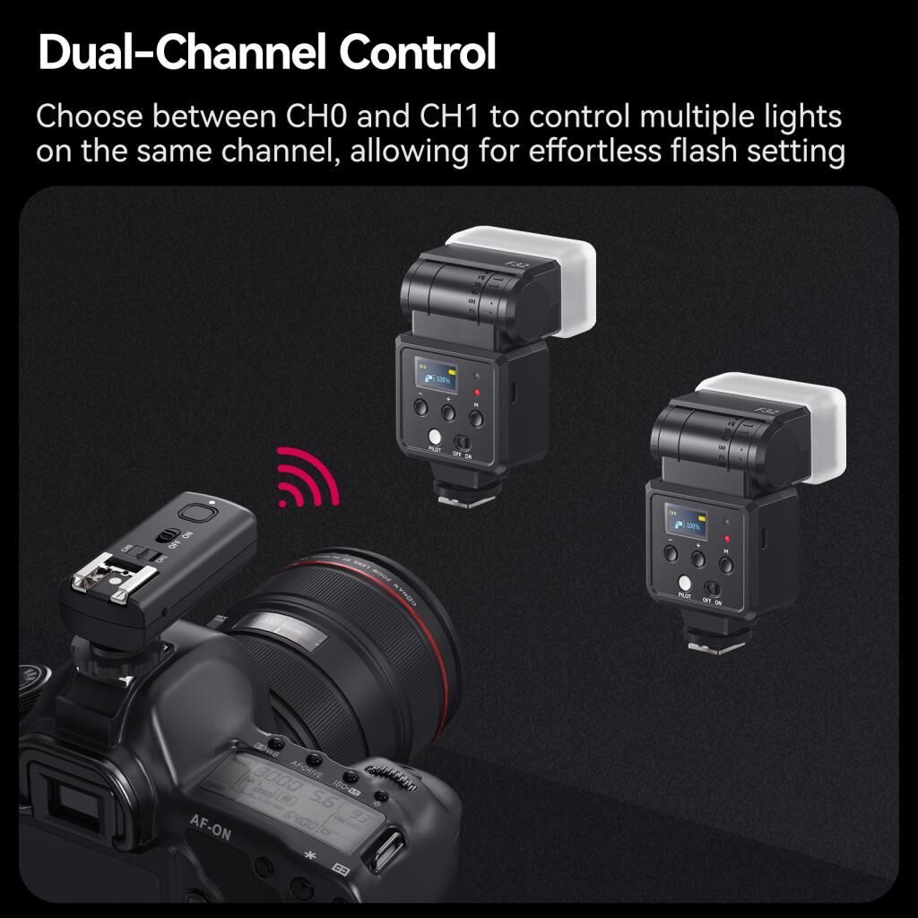- Çift Kanal Kontrol (CH0/CH1): Birden fazla flaşı aynı anda kontrol etmek için kanallar arasında kolayca geçiş yapabilirsiniz.