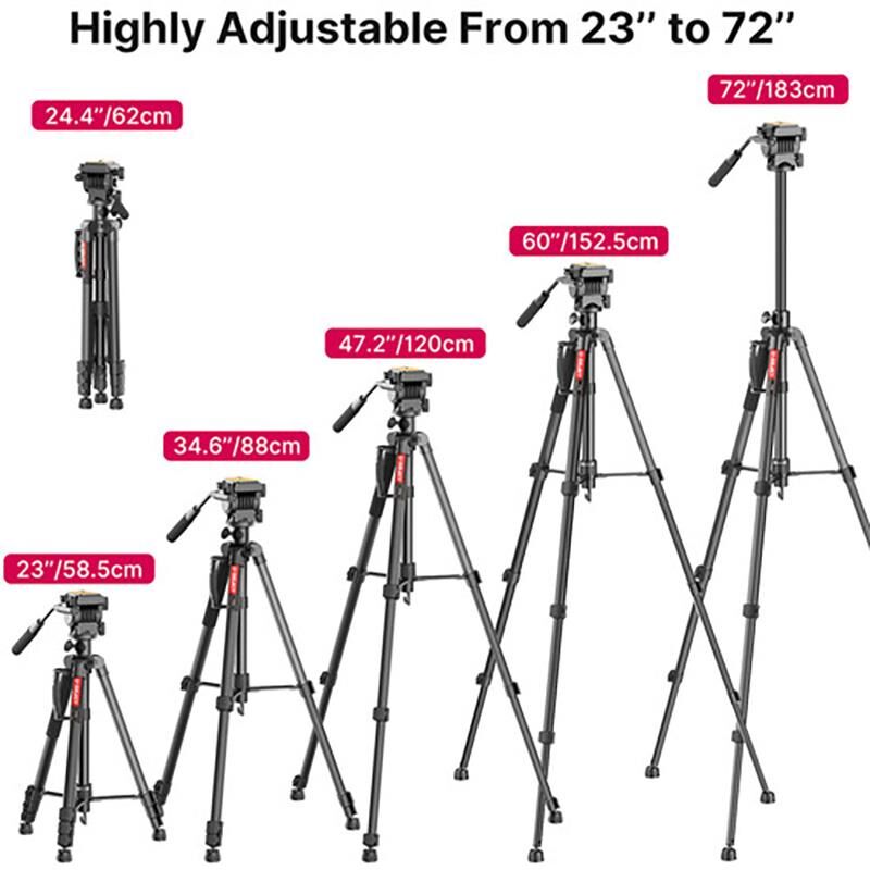 Geniş Yükseklik Aralığı: 58,5 cm'den 183 cm'ye kadar ayarlanabilir, farklı çekim açıları sunar.