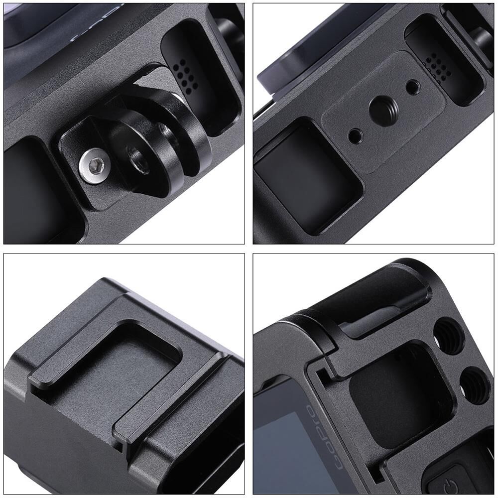 Gopro Hero 5 6 7 Black aksiyon kameralarıyla uyumlu olan bu metal vlog çerçeve cihazınızı güçlü darbelere karşı korumak ve üzerindeki universal vida ve hot shoe yuvaları sayesinde aksiyon kameranıza çeşitli ışık, mikrofon gibi çeşitli aksesuarlar bağlayabilmek için kullanılır.