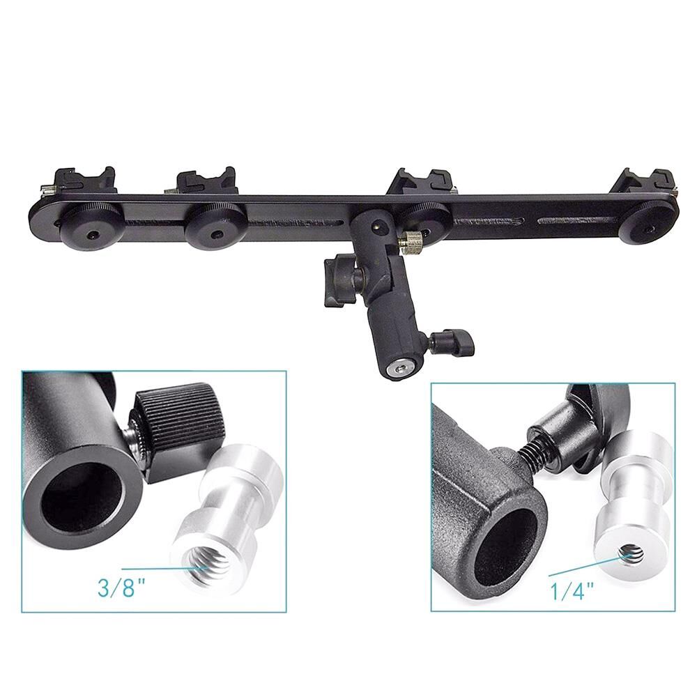 - Üst kısımda iki adet hot shoe flash bağlantısı bulunmaktadır istenildiğinde çıkarılarak 1/4" vida kullanılabilir, Ürünün alt kısmındaki bağlantı iki yönlüdür hem 1/4" vida yuvası hemde 3/8" vida yuvası barındırır.