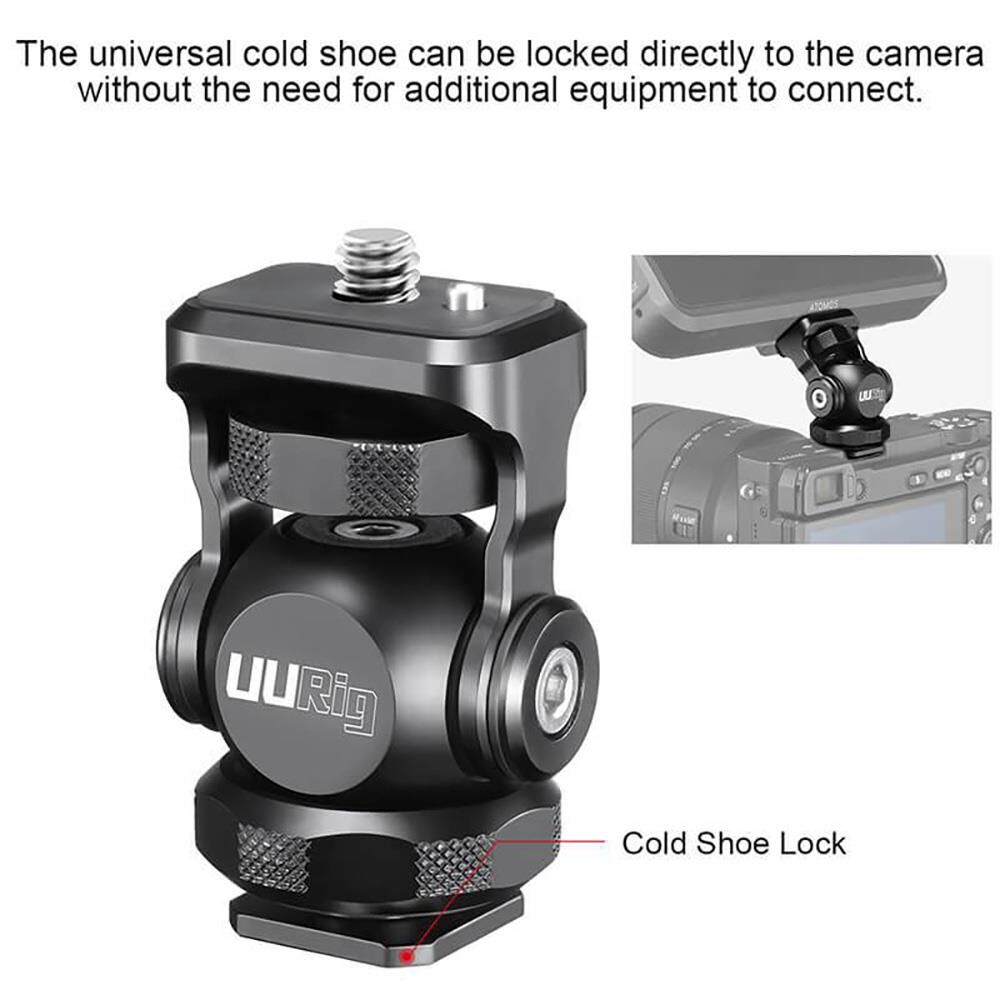 İkisi bir arada tasarım sayesinde hem standart tripodlara 1/4” vida ile hemde hot shoe yuvasına takılabilir.