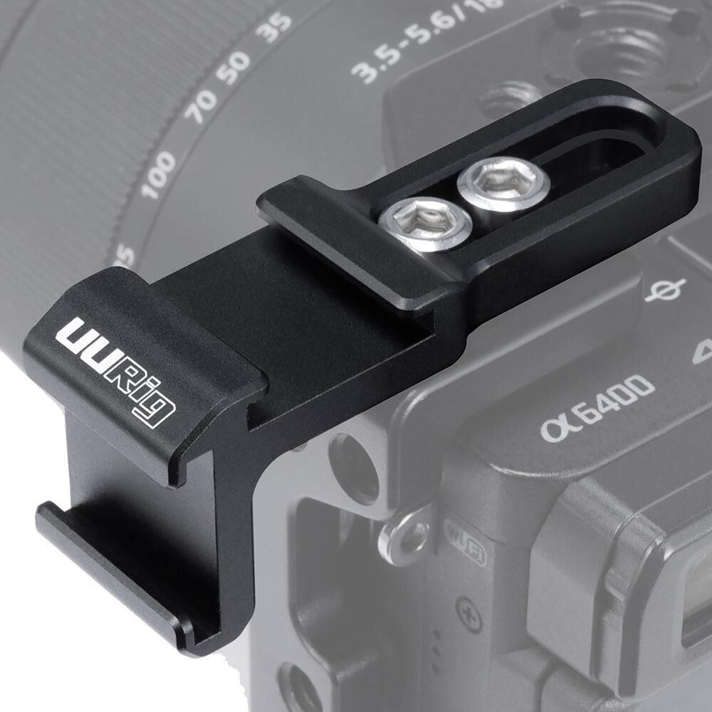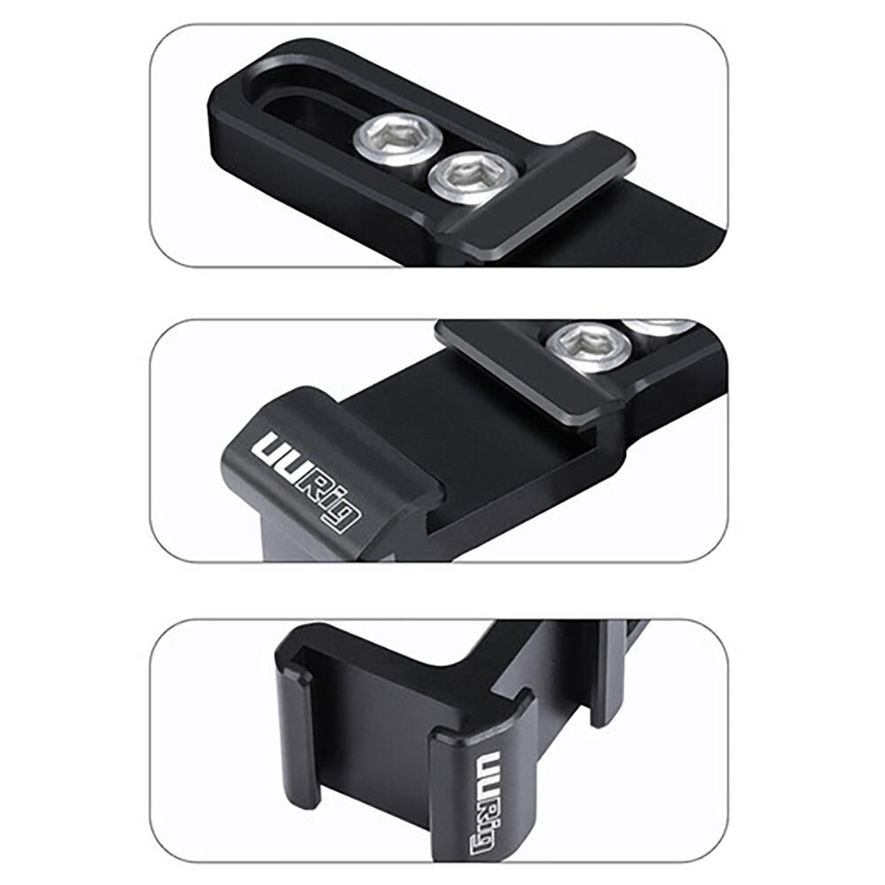 UURig R021 İkili Cold Shoe Vlog bracket ürünü vlog cage ürünleri ile birlikte kullanılabilen ve ek iki cold shoe montaj girişine sahip olan metal bir adaptördür. İki adet !74" vida girişi ile vlog cage e bağlanan ürün üzerindeki girişlerde ışık, telefon, monitör, mikrofon ve daha birçok cold shoe girişine sahip aksesuarı kullanmanıza olanak tanımaktadır. Bağlantı vidalarını istediğiniz aralıkta kullanmanız sağlanmış ve tüm UURig vlog cage ürünüyle birlikte kullanmanız sağlanmıştır. Metal alaşım bir parça olan ürünün, kutu içeriğinde iki adet 1/4" ölçüye sahip vida ve bir adet alyan çıkmaktadır. Bu sayede takıp sökmekte rahat hareket etmeniz sağlamaktadır.