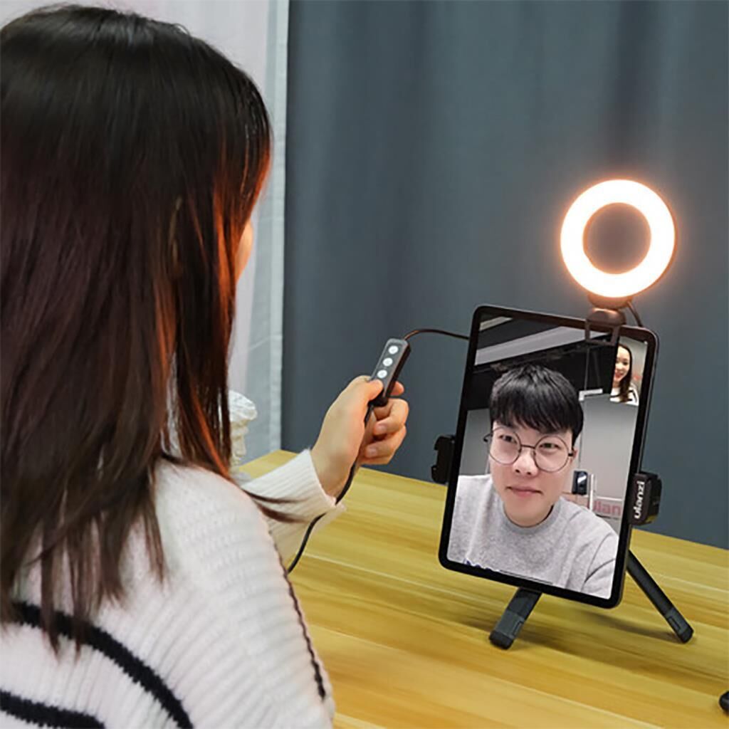 Vijim CL06 Video konferans ışığı ile görüntülü sohbetlerinizi, Zoom toplantılarınızı ve canlı yayınlarınızı aydınlatın. Dairesel halka ışık tasarımıyla oluşturulmuş bu öğe, dizüstü bilgisayarınıza, iPad'inize, tabletinize veya başka bir cihaza takılır ve yumuşak dolgulu aydınlatma sağlar. Çevredeki ortam ışığına bağlı olarak seçilebilecek üç renk dengesi seçeneği de vardır.